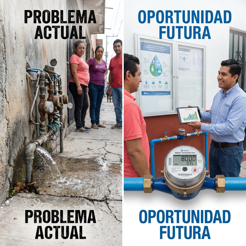 Muchas redes tienen fugas visibles e invisibles. Muchas tomas tienen años sin revisión. Muchos medidores ya no reflejan bien los consumos bajos. Y en varios casos, la gente no confía en la lectura ni en la factura.