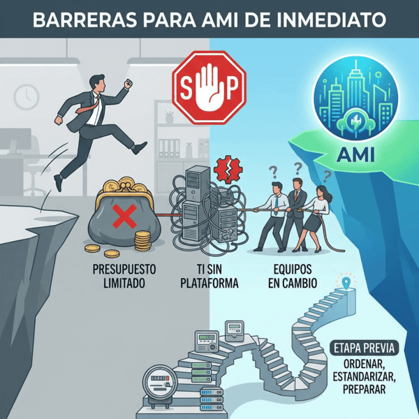 AMI exige inversión en red fija, plataformas, ciberseguridad y procesos nuevos. Yo uso una etapa previa para ordenar medidores, estandarizar modelos y preparar interfaces para lectura remota y sistemas periféricos, tal como permite el calculador con sus puertos.