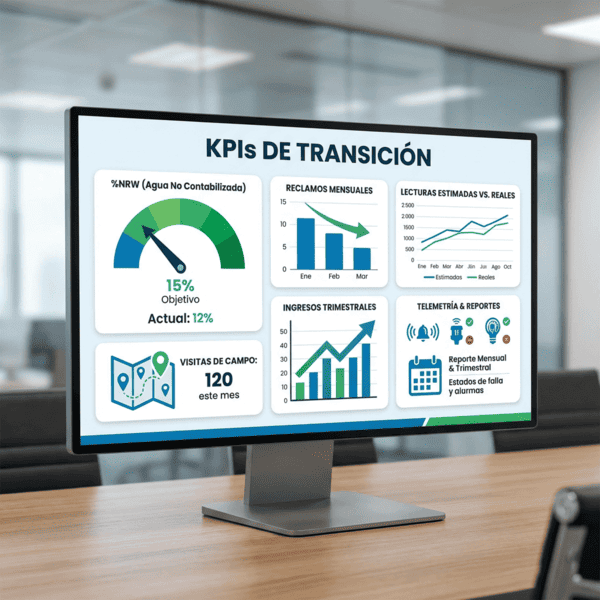 Yo mido %NRW, reclamos, lecturas estimadas, visitas de campo y ingresos. Yo agrego estados de falla y alarmas en la telemetría para separar causa y para evitar confusión con indicaciones válidas.