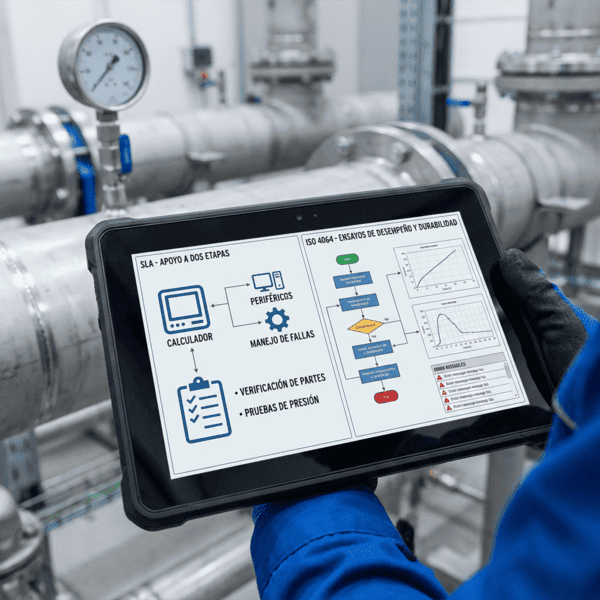 Yo escribo en contrato que el calculador debe incluir todos los parámetros sujetos a control legal desde el inicio. Yo exijo interfaces documentadas para acoplar equipos periféricos, HES y MDMS, y pido pruebas de integración antes del despliegue masivo. Yo incluyo cláusulas para manejo de fallas: si un dispositivo transmite durante una falla, la trama debe marcar el fallo y las estimaciones no deben confundirse con indicaciones válidas, para proteger el proceso comercial. Yo pido evidencias de verificación inicial de partes separables, como transductores e indicadores, con MPE cumplidos, para facilitar mantenimiento y reemplazos sin perder conformidad. Yo exijo pruebas estáticas de presión conforme a 1.6x y 2x del límite, y reportes de conexiones fiables entre transductor, calculador e indicador. Yo solicito ensayos de desempeño y de durabilidad para asegurar funciones y exactitud en el tiempo. Con esto, yo aseguro una estrategia en dos etapas sin sorpresas.