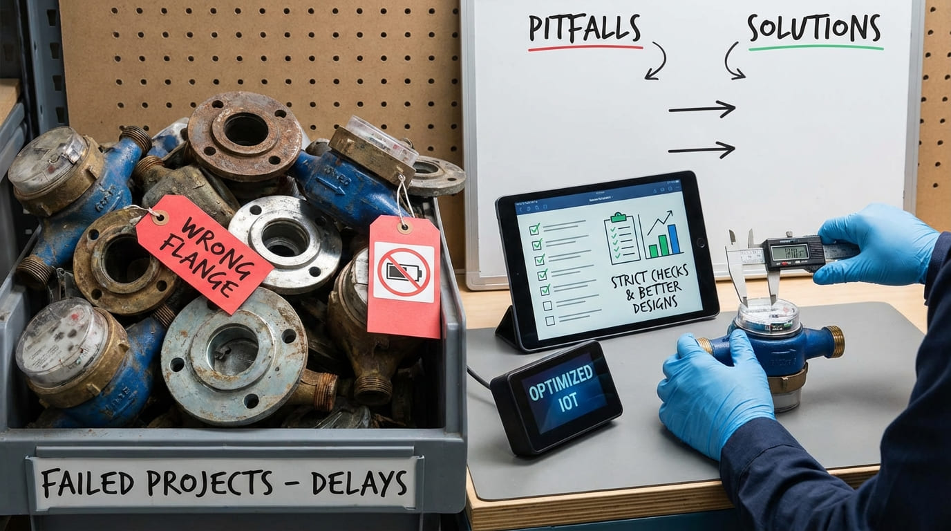 Most overseas smart metering projects fail due to basic mechanical, communication, and environmental oversights. I use double-check systems, upgraded seals, and optimized IoT algorithms to solve flange mismatches, leaks, and activation blocks before shipment.