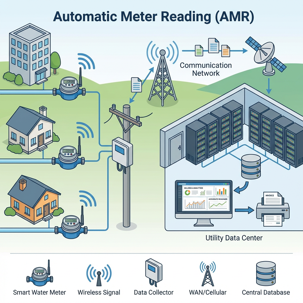 AMR (自動抄表) 是一種用於自動從水錶收集消耗數據並將其發送到中央數據庫進行處理的技術.